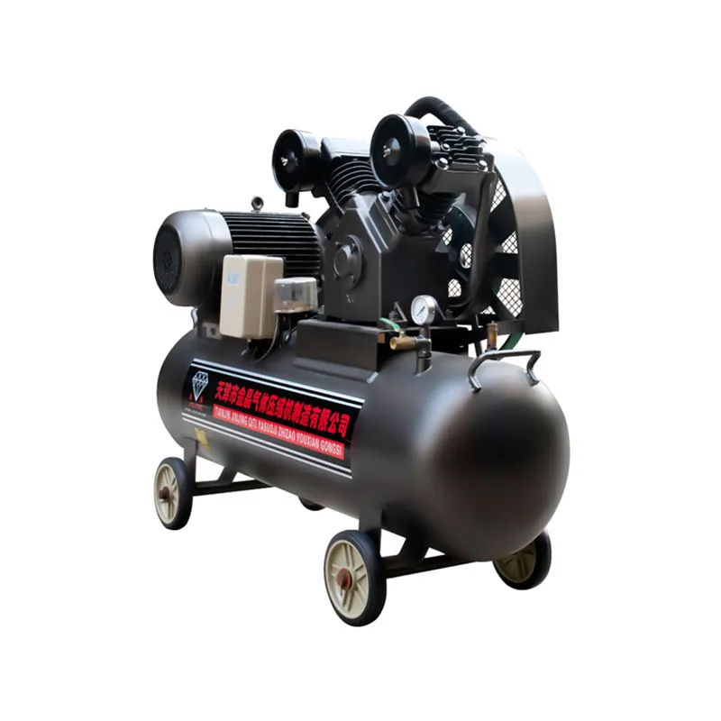 Безмасляный воздушный компрессор представляет собой миниатюрный поршневой компрессор. Двигатель приводится в движение одним валом с симметрично распределенной кривошипно-шатунной механической структурой. Основным движением является поршневое кольцо, а вспомогательным движением - цилиндрическая поверхность из алюминиевого сплава. Движение такое же, как и у поршневого кольца. Самосмазывающийся без добавления смазки. Компрессор циклически изменяет объем цилиндрического цилиндра за счет возвратно-поступательного движения кривошипа и коромысла, при этом объем цилиндра изменяется в противоположных направлениях дважды при работе двигателя в течение недели. Когда положительным направлением является направление расширения объема цилиндра, объем цилиндра является вакуумным, атмосферное давление больше, чем давление воздуха в цилиндре, и воздух поступает в цилиндр через воздушный клапан. В это время происходит процесс всасывания: при обратном направлении - направлении уменьшения объема, газ, поступающий в цилиндр, подвергается воздействию сжатия, давление в объеме быстро увеличивается. Когда оно превышает атмосферное давление, открывается выпускной клапан, и в это время происходит процесс выхлопа. Благодаря одноосевой и двухцилиндровой структуре газовый поток компрессора удваивается по сравнению с одноцилиндровым при постоянной номинальной скорости, вибрация и шум, создаваемые одноцилиндровым компрессором, хорошо устраняются, а общая структура становится более компактной.