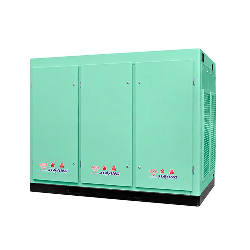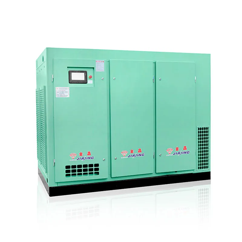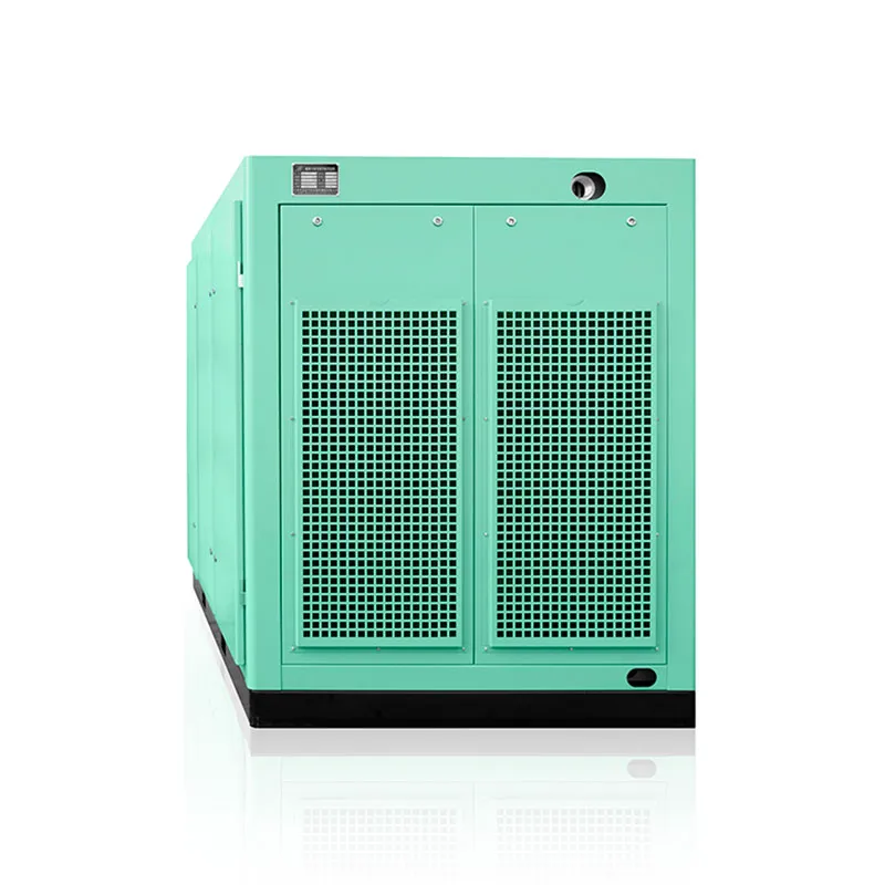 По сути, двухступенчатое сжатие заключается в объединении ротора первой ступени сжатия и ротора второй ступени сжатия в корпусе и непосредственном их приводе через косозубые шестерни. Природный воздух поступает на первую ступень сжатия через воздушный фильтр, где он смешивается с небольшим количеством смазочного масла в камере сжатия, и в то же время смешанный газ сжимается до межступенчатого давления. Сжатый газ поступает в охлаждающий канал и вступает в контакт с большим количеством масляного тумана, тем самым значительно снижая температуру. Охлажденный сжатый газ поступает в ротор второй ступени, подвергается вторичному сжатию и сжимается до конечного давления выхлопа. После этого компрессор выпускается через выхлопной фланец, завершая весь процесс сжатия.